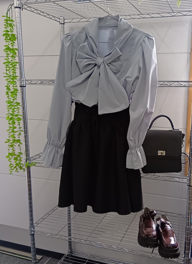 お店に出す春物の衣類を仕分けをしていただき、最後に春のお出かけコーディネートを選んでいただきました。
